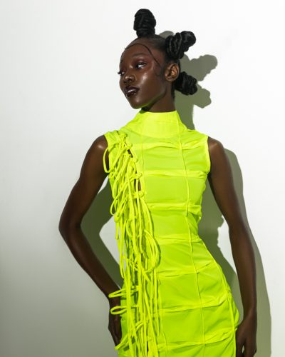 USD700.00Dare to be different? Do it with this neon structured pleat and massive knotted ropes trampoline look. This dress is from our SS23 collection featuring a gender-neutral design and exaggerated knot ropes fastened on the shoulder, sleeves, […]